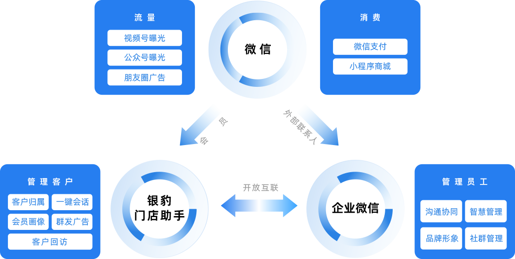 银豹打通微信、企业微信、小程序端,帮助商户在企业微信
